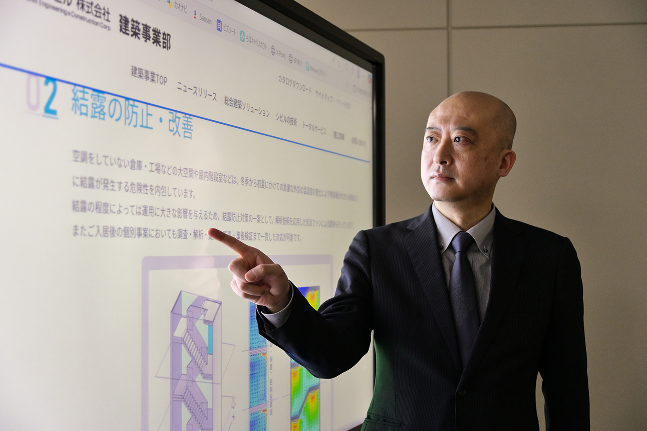 私の担当は、大規模建築物の設備設計です。建築設備は、より快適・機能的、そして安全に保つため絶えず進化を続けています。例えばセキュリティはより高度なものが必要とされていますし、空調や照明なども省エネや快適さを効率的に自動制御する方法も取り入れなければならない。日々勉強が必要ですけど、その度に面白さは増していきます。